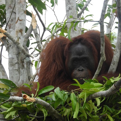 Meki lives on one of the BOS Foundation’s pre-release islands called Kaja Island. Meki and the other orangutans on Kaja ...